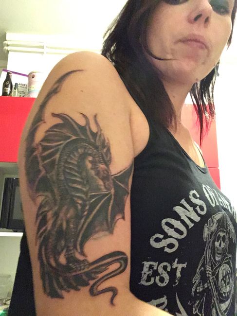 Cc a toutes Alors voilà j’avais un vieux truc tous Michel photo 1 et je ne voulais pas me marier avec ça donc une après midi chez le tatoueur et tada photo 2 voilà la bêtes 😍😍😍