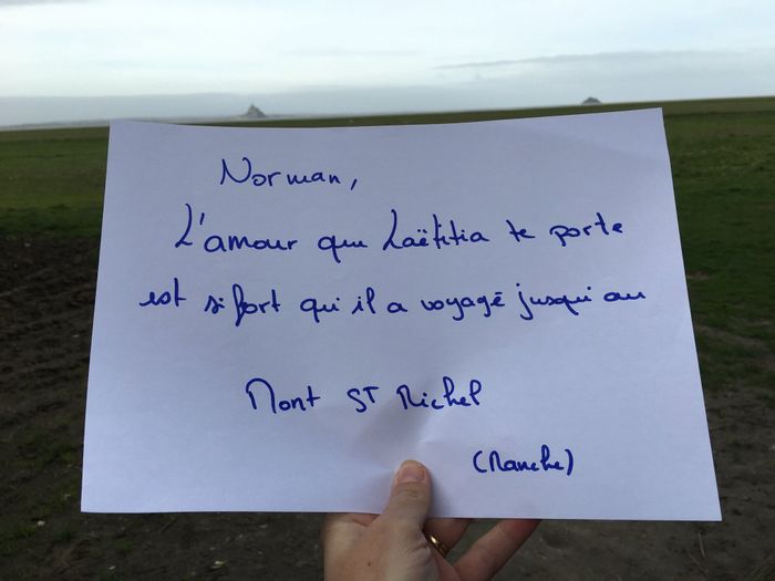 Coucou Je me lance à mon tour j’aimerais offrir une boîte Love Note le matin du mariage. Mon texte : Normann l'amour que Laëtitia te porte est si fort qu'il a voyagé jusqu'à... (ville et département) Je peux également vous en faire dans la Manche...