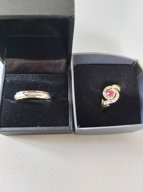 Coucou tout le monde, je vous partage ma joie du jour, nous sommes allé chercher l'alliance de monsieur chez le bijoutier. Elle est trop belle 😍 Je vous mets aussi une photo de nos 2 alliances réunies 😊.