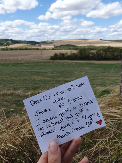 Bonjour à toute. Notre mariage est pour mai 2020 et j'aimerais crié au monde entier à quel point je l'aime pourriez vous m'aider et m'envoyer une photo de votre département, pays ? Avec " Franck je t'aime tellement , que je le cris de ...... " Merci...