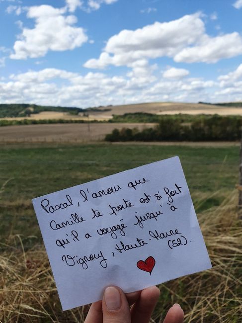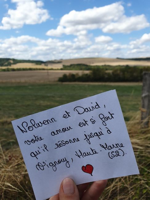 Bonjour la communauté ! Afin de réaliser un petit livre pour le jour J, j'aurais besoin du plus de love note possible svp, Ma phrase serait " Pascal, l'amour que Camille te porte est si fort qu'il à voyagé jusqu'à (ville et département ) " Je suis...