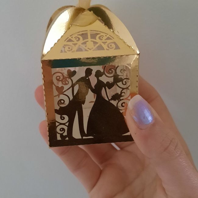 Coucou Je viens enfin de recevoir les dragées que j'avais commandé il y a un peu plus d'un mois Plus qu'à attendre l'ouverture des boutiques pour récupérer ma robe, nos alliances, m'acheter des chaussures ainsi qu'à nos filles, se mettre d'accord...