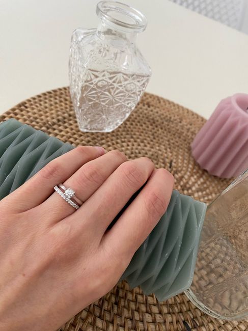 Bonjour à toutes, Juste pour le plaisir des yeux, ça donne quoi chez vous l'association de votre bague de fiançailles avec votre alliance ? Voici les miennes A vos photos !