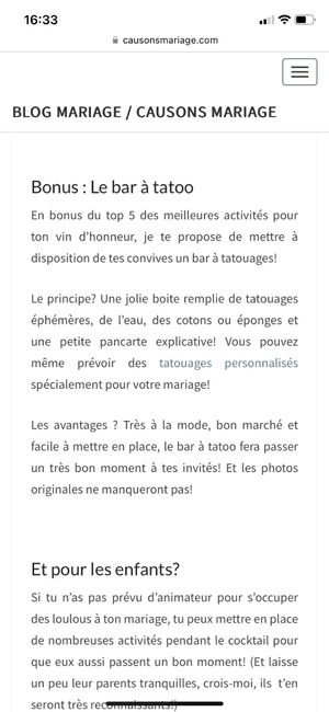 Bonjour à tous ! Je dois trouver une activité à organiser pendant le vin d'honneur ! J'ai besoin d'aide !!! Avez vous fais des activités pendant le vin d'honneur ?? Donnez moi des idées MERCI 😘