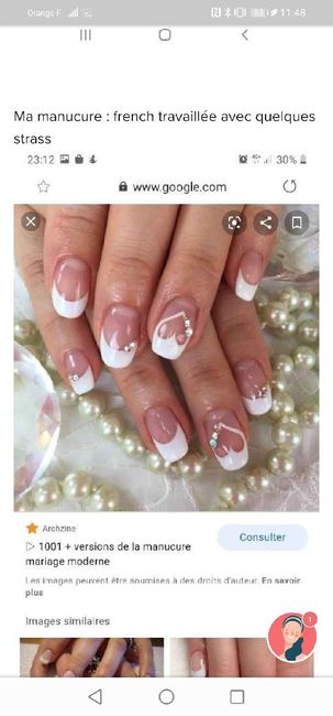 Coucou les filles Je me demande quoi faire comme manicure pour le jour J vous allez faire quoi? Des idées des photos pléase Une idée du prix? Merciii