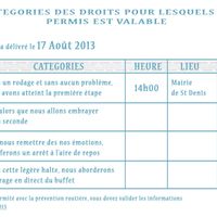 Il y a 4866 joursJ'ai besoin de vous pour le texte de notre faire-part. Il est sous forme de permis de conduire, il y a donc 4 phrases (une pour la mairie, une pour l'église, une pour le VH et une pour le repas). Mairie : Après un rodage et sans aucun problème, nous...