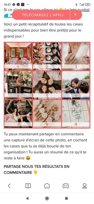 Si tu viens de tomber sur cette page c'est que tu as pu répondre à toutes les questions précédentes de notre loto nuptial ❤️ ! Si ce n'est pas le cas, clique-ici 👉 Le loto nuptial 🎟️💍 Voici un petit récapitulatif de toutes les cases indispensables...