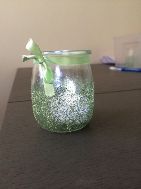 Tout est dans le titre Impossible de trouver des photophores couleur vert d'eau donc voici le résultat d'un essai maison Ce sera bougie led à flamme blanche donc moins jaune le rendu...