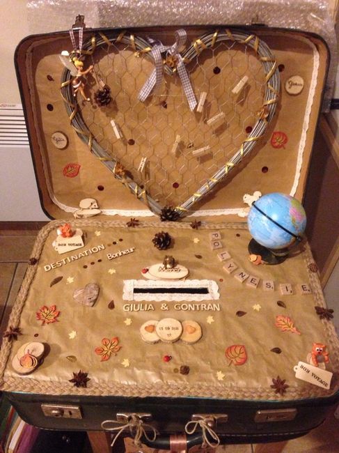 Apres l'achat d'une valise dans une brocante, me voici partie pour la customiser pour qu'elle soit l'urne de notre mariage puisque notre thème est les voyages voici les différentes étapes! Je suis plutôt satisfaite du résultat :$