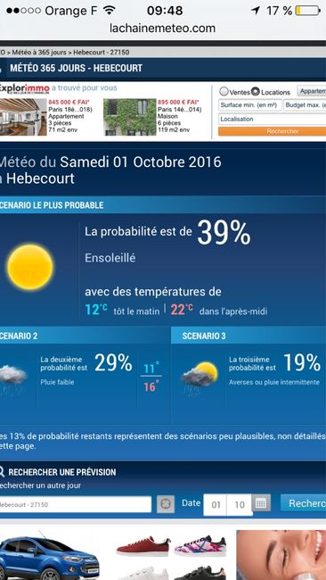 Coucou les filles. J'ai découvert qu'il était possible de consulter les probalitités météorologiques 365 jours à l'avance. http://www.lachainemeteo.com/previsions-meteo-a-365-jours.php On est bien d'accord pour dire qu'il y a 100% de chance...