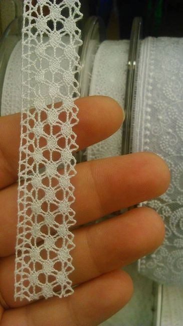 Voilà j'ai trouvé ma dentelle la blanche pour les pots transformés en vases et la bleue pour customiser le futur livre d'or que je n'ai pas encore trouvé ! Dentelle blanche Dentelles