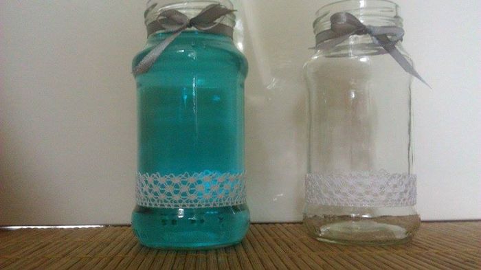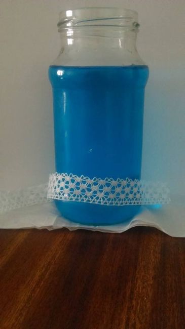 Bien entendu, la dentelle serai bien collée à cet endroit, et je pense rajouter un ruban en satin gris et un bleu turquoise en eau du pot, après je ne sais pas ce que je vais mettre dedans ou dessus. Je pense aussi mettre une bougie led submersible...