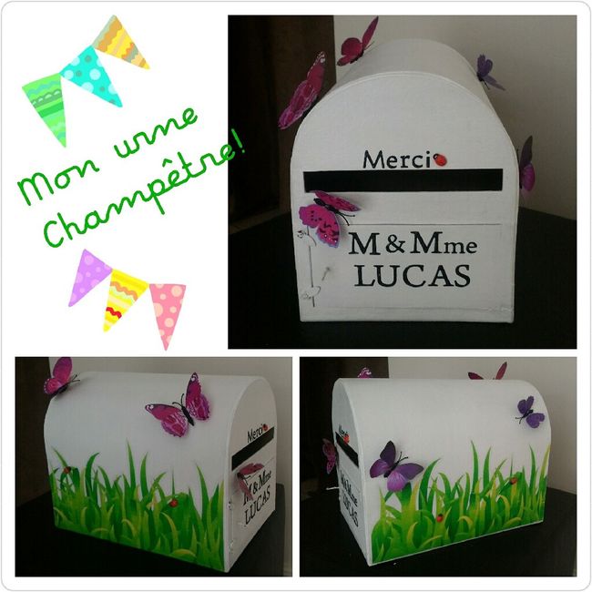salut a vous lesfilles voila mon urne j'aurais besoin de votre avis les filles jai rajouté MERCI mais je la trouve qu'il manque quelque chose sachant que notre theme est rose , gris et papillons urne maison urne maison