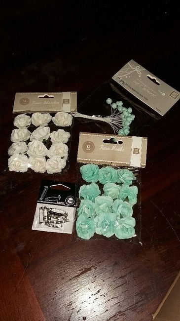 Bonjour communauté !!!Debut d'apres midi shopping ! Au programme : de quoi faire mes boutonnieres, de quoi faire mes petits pots pour mettre cures dents et pailles pour le vin d'honneur et mon plan de table !!! Merci noz parce que 12 boules de verres...