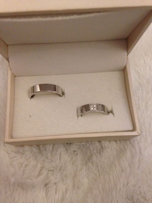 Alliances Voici nos bébés d'amour, nos petites chérie.. nos ALLIANCES: Dingue amoureuse, je les trouve parfaite exactement comme j'en rêvais. Or blanc, 4 diamants au centre pour moi, épaisse, avec une belle gravure dedans