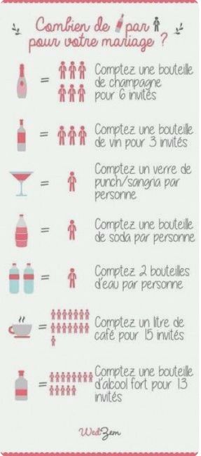 Coucou!! Ce matin je vais sur Pinterest et je découvre cette image bien utile pour estimer la quantité de boisson à prévoir pour un mariage. Je vous en fait donc profiter! Bonne journée!! 😊