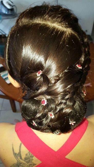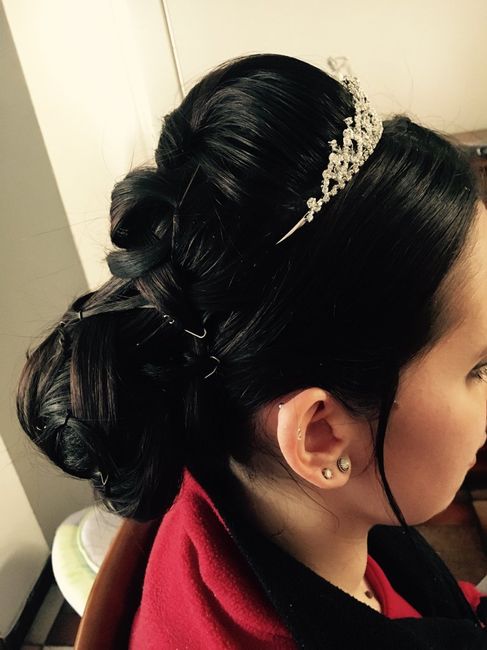 Coucou!! Voici quelques photos de mon essai coiffure fait par ma belle sœur (qui je le précise n'est pas coiffeuse). Elle avait oublié ses épingles donc on a fait avec ce qu'on a trouvé chez mes beaux parents (épingles pour cheveux clairs et de...
