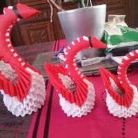 Il y a 3649 joursAprès un premier essai j'ai trouvé un autre tuto que j'ai réalisé mais je trouvais le cygne trop gros ( c'est pour faire un cadeau au inviter) du coup je l'est réduit jusqu'à la taille souhaité er voilà le résultat. Je vais voir a y mettre une petite...