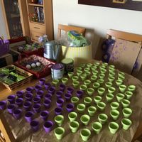 Il y a 3591 joursEt voilà j'ai peint tous les pots en terre cuite aux couleurs de mon mariage. J'ai déjà fait 30 boules d'hortensia il m'en reste 90... J'en fait environ 5 tous les jours mais j'avoue faire d'autres choses pour varier les plaisirs