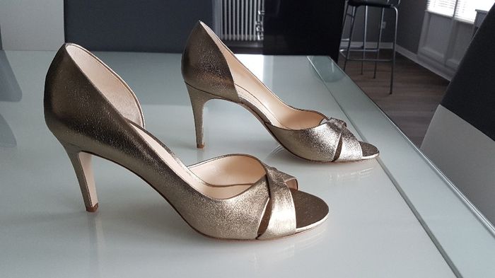 Coucou les Girls ! Je m'adresse à toutes celles qui se sont déjà mariées ou toutes celles qui aurait des photos de vos chaussures dorées ou argentées avec une robe ivoire. Pouvez vous me montrer svp car j'hésite vraiment. Merci les Girls !