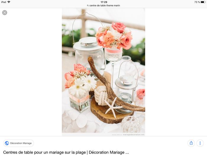 Bonjour, avec mon mon futur mari nous avons choisi le thème de la mer , mais on on veut pas d un mariage kitch avez vous des idées pour le centre de table en terme de fleur
