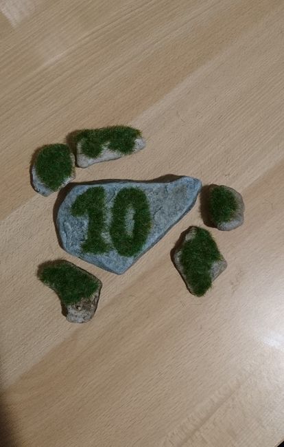 Coucou, Besoin d'un avis pour la numérotation de mes tables. J'ai essayé de faire des numéros sur des morceaux de roche comme si un végétal y poussait. Je trouvais ça en raccord avec mon thème forestier. Cela rend-il bien ? J'ai essayé avec deux...