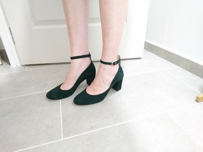 Coucou à toutes, J'ai trouvé mes chaussures youpi ! Je les voulais vert foncé pour respecter l'autre couleur de notre mariage avec le blanc. Je serai aux couleurs de mon mariage (qui a un thème forestier). Je ne pensais pas prendre de talons avec mes...