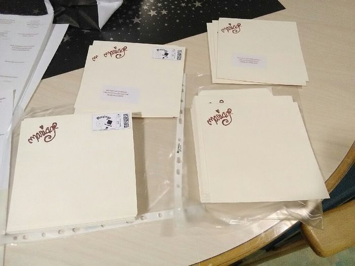 Voilà Enveloppes prêtes et trier vin d honneur, repas.... Plus qu a mettre les faires part vite, vite lol.. 😀😀