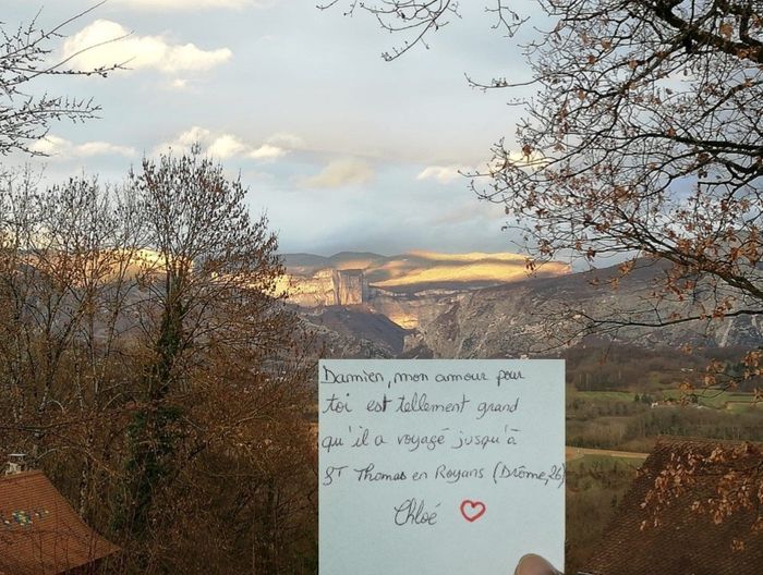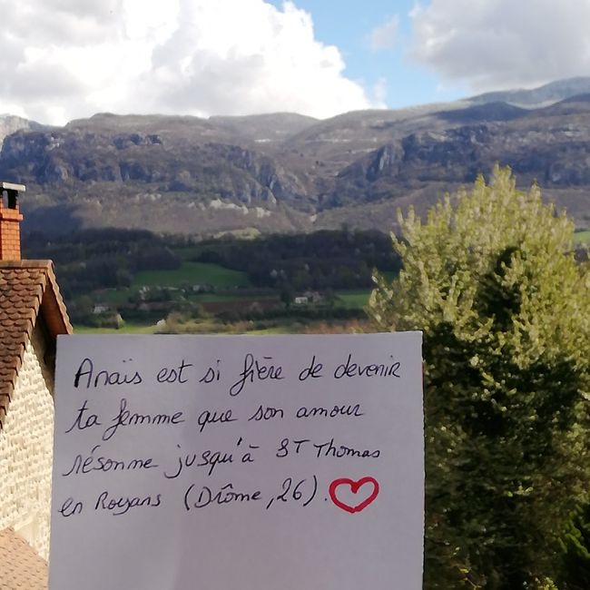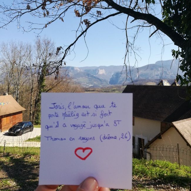 Bonsoir, Je viens de voir l'idée de la "Love note" et j'aimerais le faire pour mon homme afin de lui montrer tout l'amour que j'ai pour lui. Et que cet amour peut faire la France entière. Svp pourriez-vous me faire une photo de chez vous avec le...
