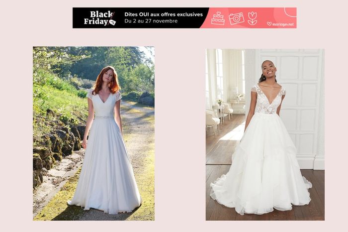 Communauté ! ✨ Commençons ce jeu spécial Black Friday avec la tenue de mariée. Parmi ces 2 options de robes tu votes pour laquelle ? -- 👉 Visite tous les modèles avec une REMISE via ce lien : OFFRES BLACK FRIDAY ICI **