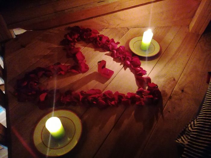 Il était une fois une adolescente de 15 ans qui admirait de loin un jeune homme de 17 ans. Un jour sous un porche, ils se sont embrassés pour ne plus jamais se quitter. Ils ont profité, on construit leur nid d'amour et on eu un magnifique petit garçon. Après 24 ans et 5 mois, le jeune adolescent devenu un homme a décidé de demander la main de sa moitié.