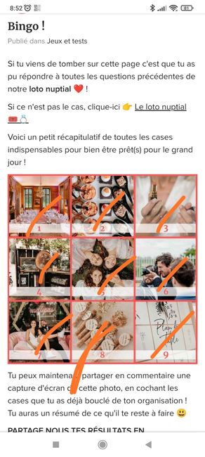Si tu viens de tomber sur cette page c'est que tu as pu répondre à toutes les questions précédentes de notre loto nuptial ❤️ ! Si ce n'est pas le cas, clique-ici 👉 Le loto nuptial 🎟️💍 Voici un petit récapitulatif de toutes les cases indispensables...