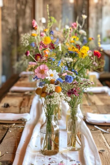 Hello, on fait un mariage et baptême très simple, food truck, etc. On part sur un 《thème》champêtre, bohème. On pensez faire de la déco très simple style vase fleurs en centre de table, nappe blanche, etc. Celles dans le même cas, que prévoyez vous ?...