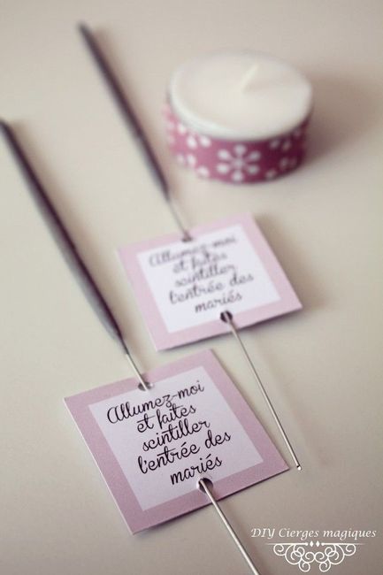 coucou, je voudrais acheter des cierges qui scintillent mais je ne sais pas si il faut mieux les allumer pour la pièce montée ou pour la haie d'honneur?? je les mettrais dans un vase droit dans du sable avec une pancarte. avez vous des idées de...