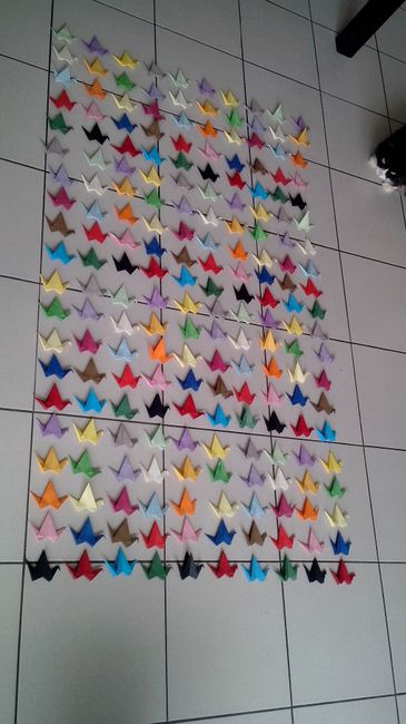 Pour être honnête, j'en ai fait un paquet soit 200 (enfin, après tri, il s'avère qu'il y en a 202). J'ai fait des essais pour montrer à chéri ce que ça pourrait donner : - bien organisées et rangées en vagues . - en mode désorganisée (mais bien...