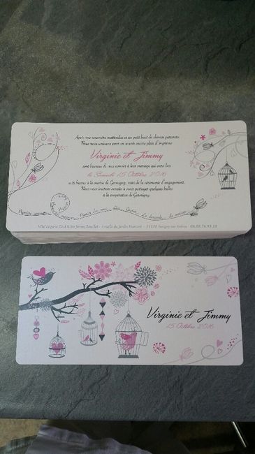 Cc tout le monde ça y'est j'ai reçu tout les fp carton invitation et enveloppe version irisé comme je voulais. Je suis comme une gamine lol. Maintenant il faut arrondir les angles avec la perfo et patienter pour pouvoir les donner
