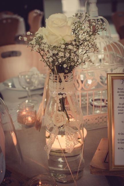 Bonjour à toutes et tous Pour celles qui ont opté pour le DIY de leur centre de table, où avez vous trouvé la dentelle en ruban ? (j'espère que c'est compréhensible > comme sur la bouteille sur la photo) Idée centre de table trouvée sur...