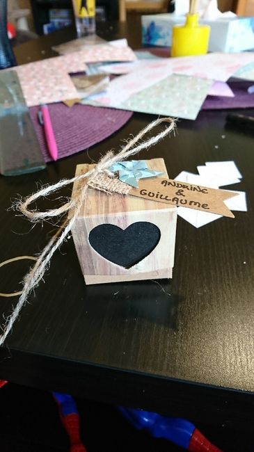 Il y a 3182 joursCoucou tout le monde ! On profite de ce dimanche au temps mitigé pour finir les quelques détails de la décoration. Au programme, palette de bienvenue, suspensions de moulins à accrocher dehors dans les arbres et étiquettes des contenants à dragées......