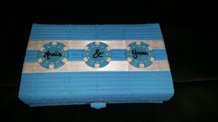 J'ai pratiquement fini ma boîte à alliances : (reste simplement à installer les alliances et à ajuster les noeuds du coussin) Puisque Amazon n'a pas pu me livrer la boîte que je souhaitais, j'ai finalement chercher dans ce que je possédais,...