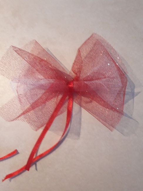 Coucou tout le monde! Je commence aujourd'hui mes noeuds de voiture et avant de partir tête baissée, j'hésite entre superposer la tulle blanche sur la rouge (1ere photo) ou alors insérer le tulle blanc dans la rouge (2eme photo). Vous préférez quelle...