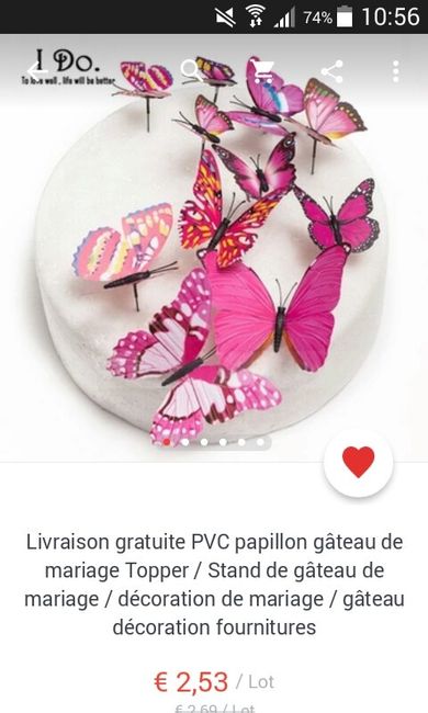 Mon thème es papillon fuchsia bilan pour ma pièces monter je voulais.que mon pâtissier me fasse une pièce monter en pointe avec un envole de papillon en pâte à sucre chosse compliquer pour lui je vien de trouver sa vous penser quoi Svp