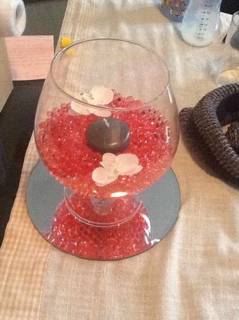 Hello !!! Voila aujourd'hui essai centre de table !!! Demain je ferais la table complète voir çe que sa donne En attendant vous préférez àvec ou sans les fleurs dedans ???
