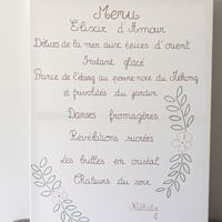 Il y a 2910 joursÇa y est je me suis lancée dans l écriture du menu qui sera sur un chevalet à l entrée de la salle! vos avis svp... quelque chose à rajouter ou pas?
