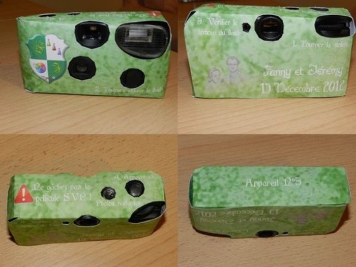 Vous aimez les photos spontanées et souhaitez avoir un souvenir de vos invités ??? Il ovus suffit de disposer un appareil photo jetable sur chacune des tables et de laisser les invités faire leur rôle de photographes. En...