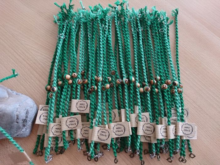 Coucou la communauté, Voici un aperçu de l'avancée que j'ai faite sur mes bracelets fait main avec une technique de macramé. J'ai acheté des perles en bois. Sur un côté j'y ai peint nos initiales et de l'autre un dessin de feuille. J'ai utilisé...