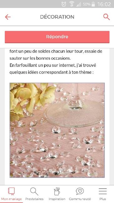 Je suis tombe par hasar sur un destokage de papier peint qui colle parfaitement avec mon theme un papier peint plume legerement argente. Jen ferais mes chemin de table. A 1.99e les 10m. Qu en pensez vous ?