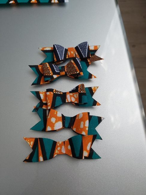Coucou les filles et les gars, je vous présente mes avancements 😊 Petits nœuds en tissus wax Petits moulins pour la déco de table des enfants Et achat de bougies pour les cadeaux d'un de nos jeux Là je suis en train confectionner les cônes pour y...