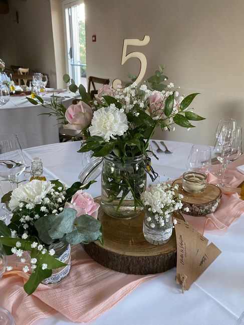 Hello les marié(e)s et FM . Petit rendu de ma Deco pour notre mariage prévu en Juin. Des modifications seront apportés bien sûr surtout concernant la couleur des roses ( elle seront couleur champagne ) .Le nom de table sera mis sur un chevalet je...