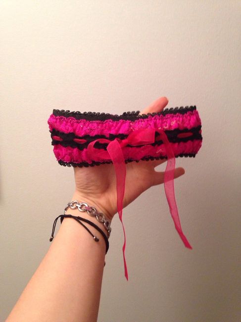 coucou, je vous propose de partager dans cette conversation, la photo de votre jarretière que vous avez acheté ou créé vous même. Voi la mienne, elle m'a été offerte par le magasin où j'ai acheté ma robe de mariée