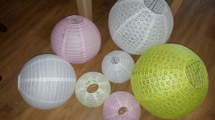 A 13 mois de notre joli jour, on commence les achats.... (Et du coup on se demande si le décorateur est vraiment nécessaire)Un assortiment de boules japonaises rose et d autre blanche, des haricots d amour, pour faire un test, et 3 boules en verre,...